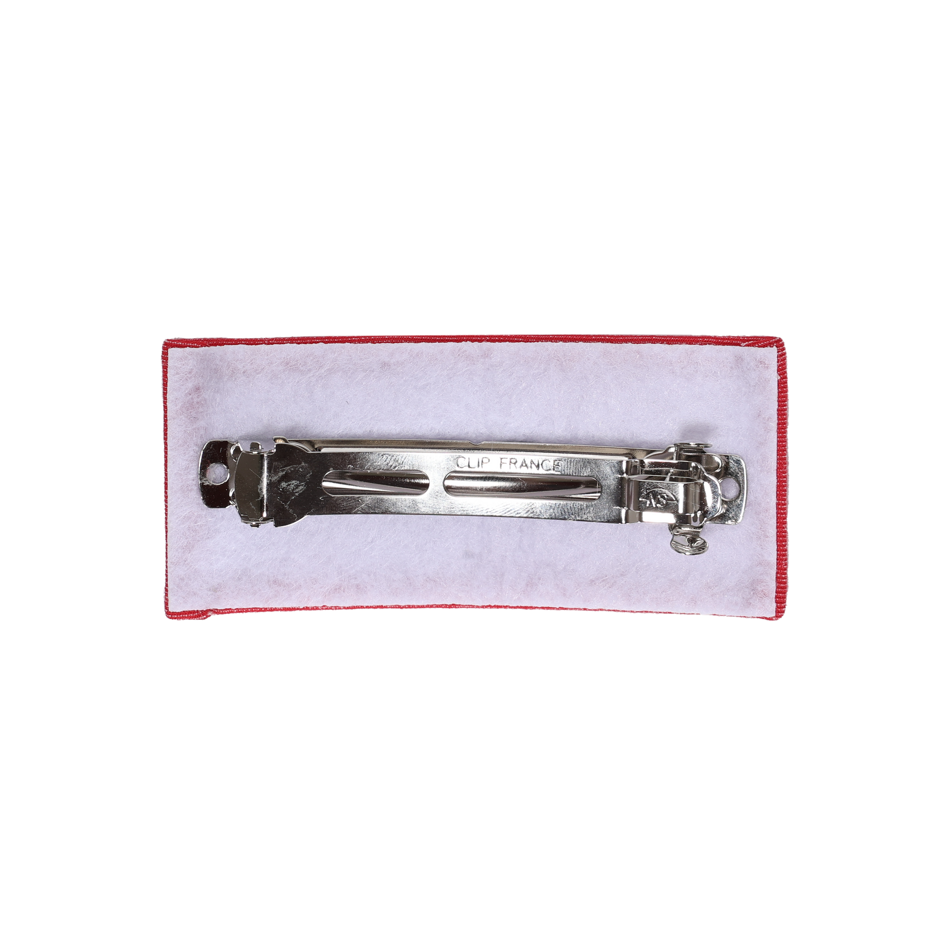 Denim Luggage Logo Collection Rectangle Barette Clip (White)