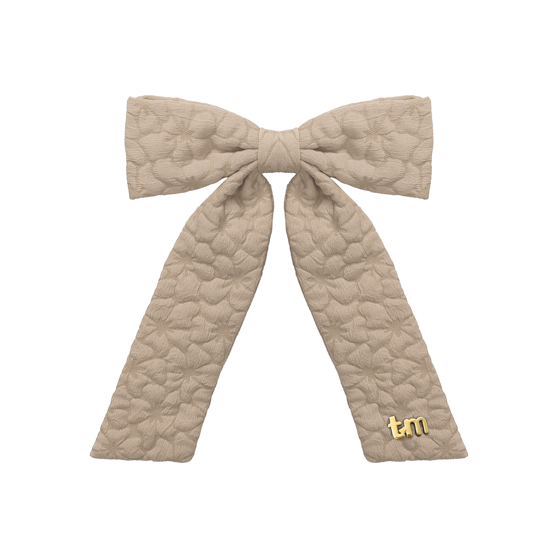 Floral Quilted Collection Large Bow Clip (Beige)