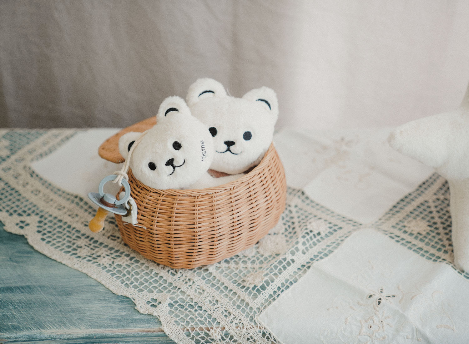 Paci Rattle Holder (Bear, Cream)